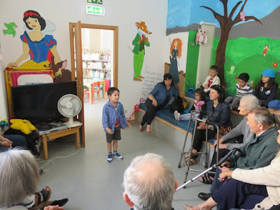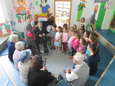 No final de cada sessão há também uma troca de presentes. As crianças oferecem uma bengala especialmente decorada e os idosos algo feito por eles para os mais novos.