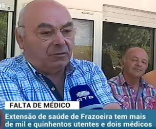 Mais uma vez a situação do Pólo de Saúde de Frazoeira esteve hoje dia 8/6/17 em destaque na RTP Regiões, não por vaidade nem por qualquer outro motivo. apenas para dar a conhecer a situação preocupante da redução de dias de consulta neste mês de Junho/17-