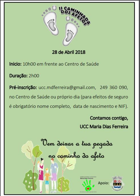 A Unidade Cuidados na Comunidade Maria Dias Ferreira vai promover no próximo dia 28 de Abril a 2ª Caminhada dos Afetos