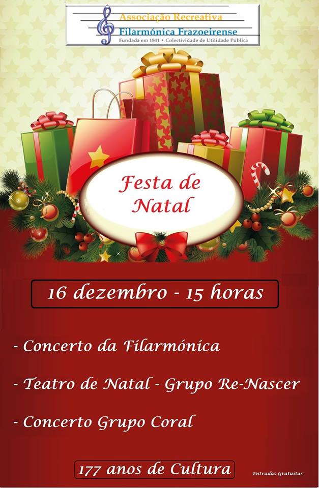 A Associação Recreativa Filarmónica Frazoeirense promove no próximo domingo, 16 de dezembro, no salão de festas da coletividade, a festa de Natal.