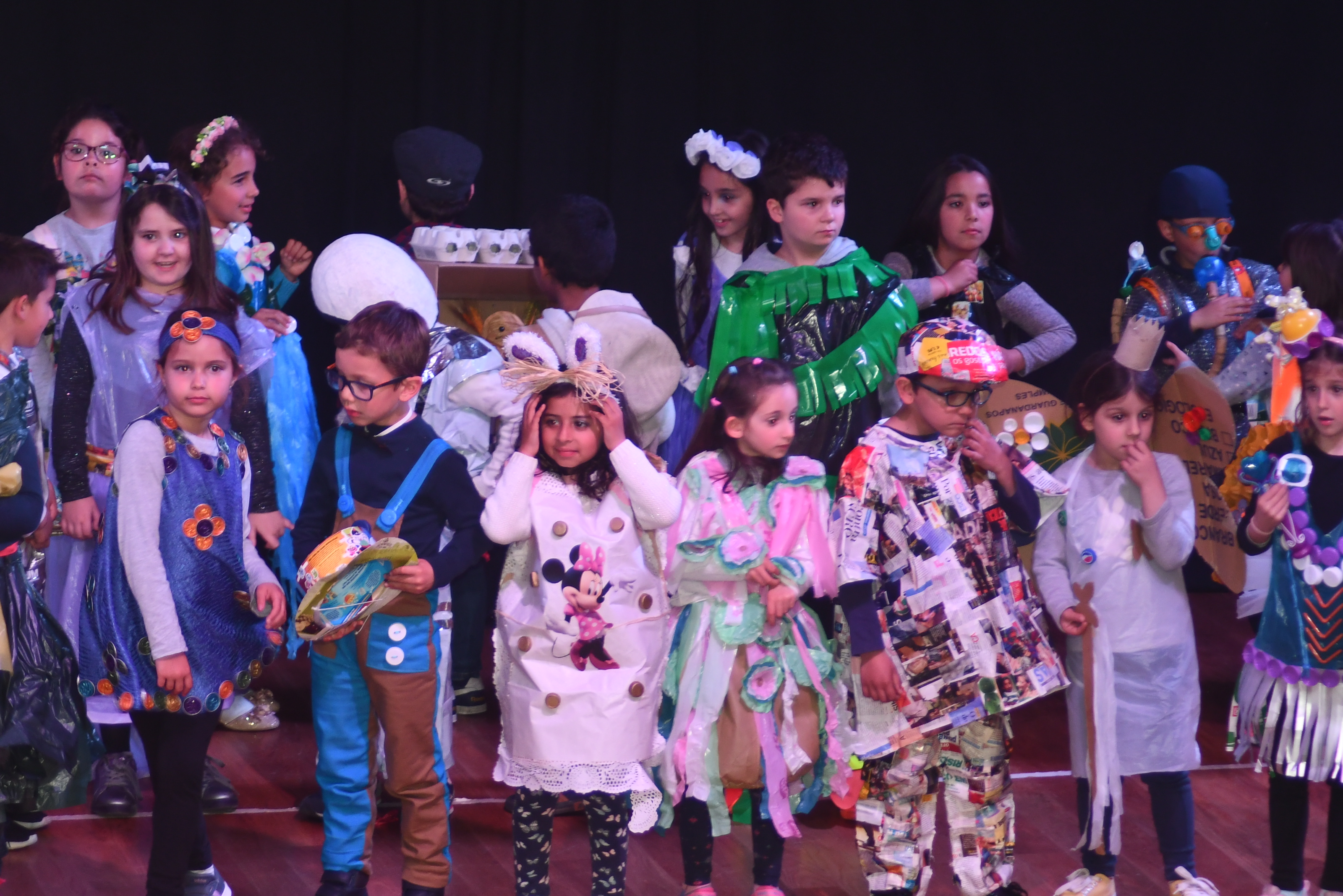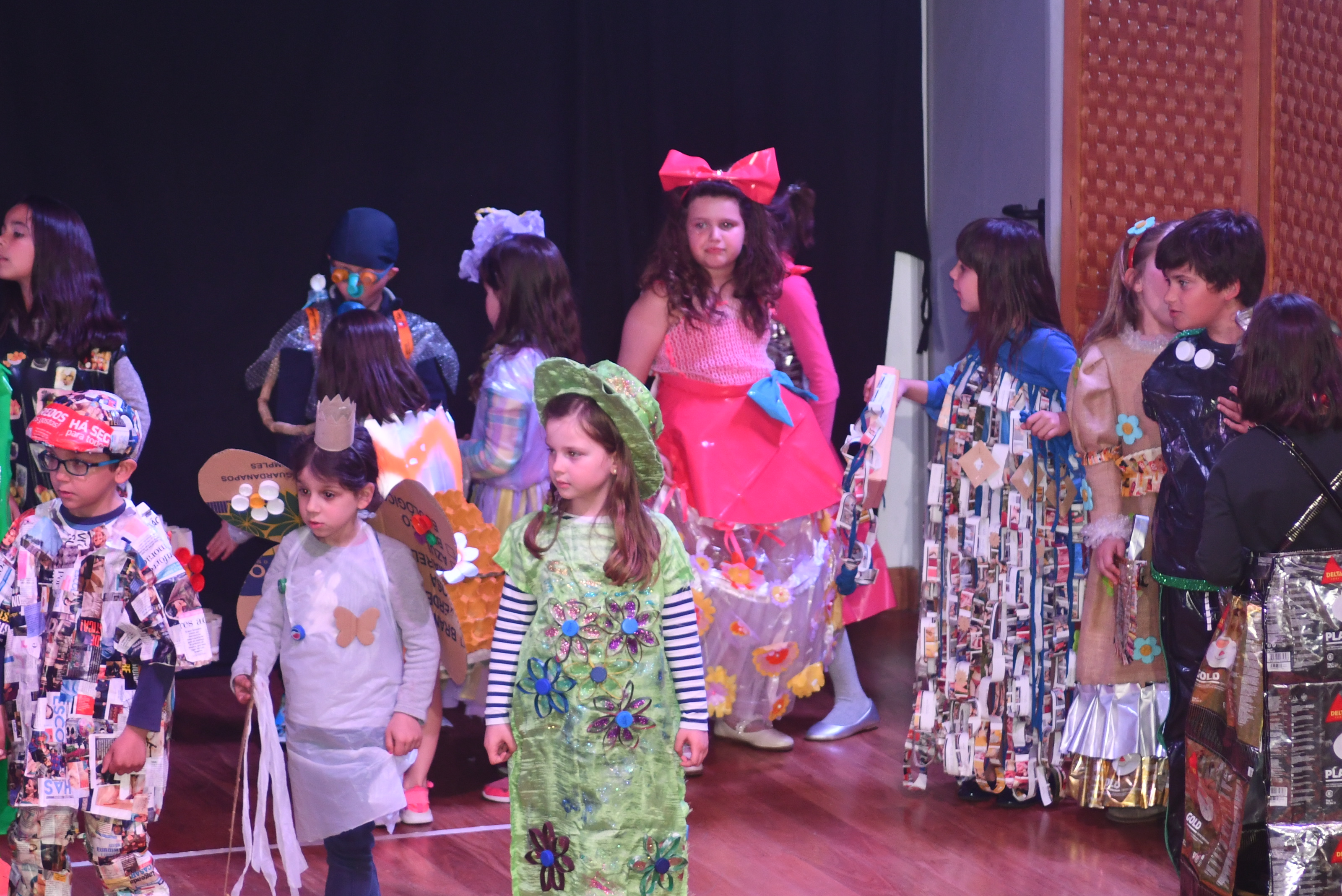 Em primeiro lugar escutaram uma conferência sobre a fauna e flora existente na nossa região. Seguidamente todos os alunos desfilaram no palco do Centro Cultural com fatos reciclados utilizando diversos materiais. Tecido, papel ou plástico. Parabéns ao Agrupamento, às escolas e professoras pelo tema e matérias abordadas nas aulas, aos alunos e pais pela imaginação.