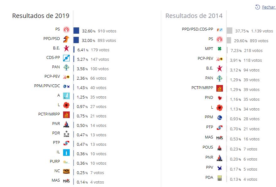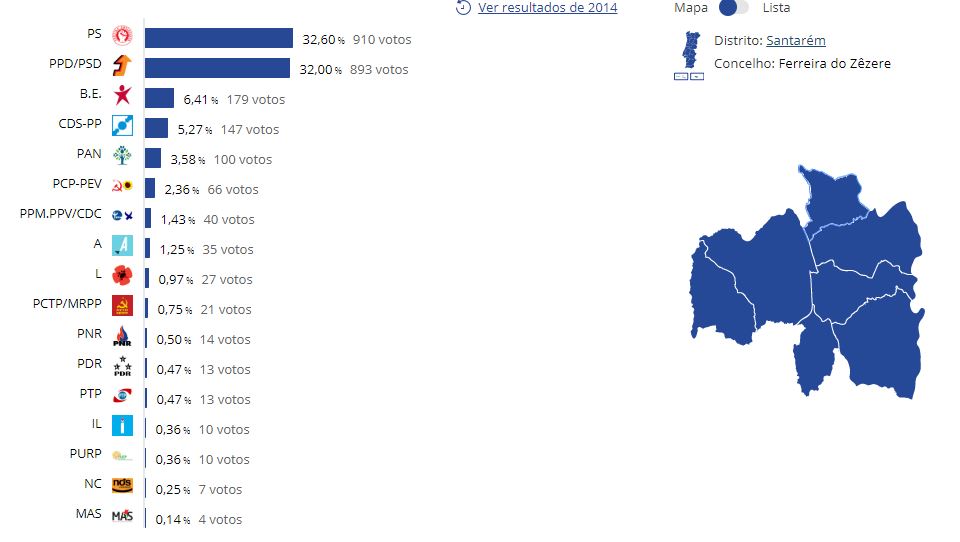 Estes são os resultados oficiais das Eleições Europeias 2019 no concelho de Ferreira do Zêzere.