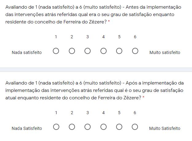 O que é pedido é que neste conjunto de obras classifique como estavam antes e depois das obras em apenas 2 perguntas.