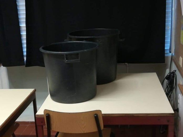 Circulam na internet imagens de uma sala de aula da Escola Pedro Ferreiro de Ferreira do Zêzere com baldes que alegadamente aparam as águas de chuva.
