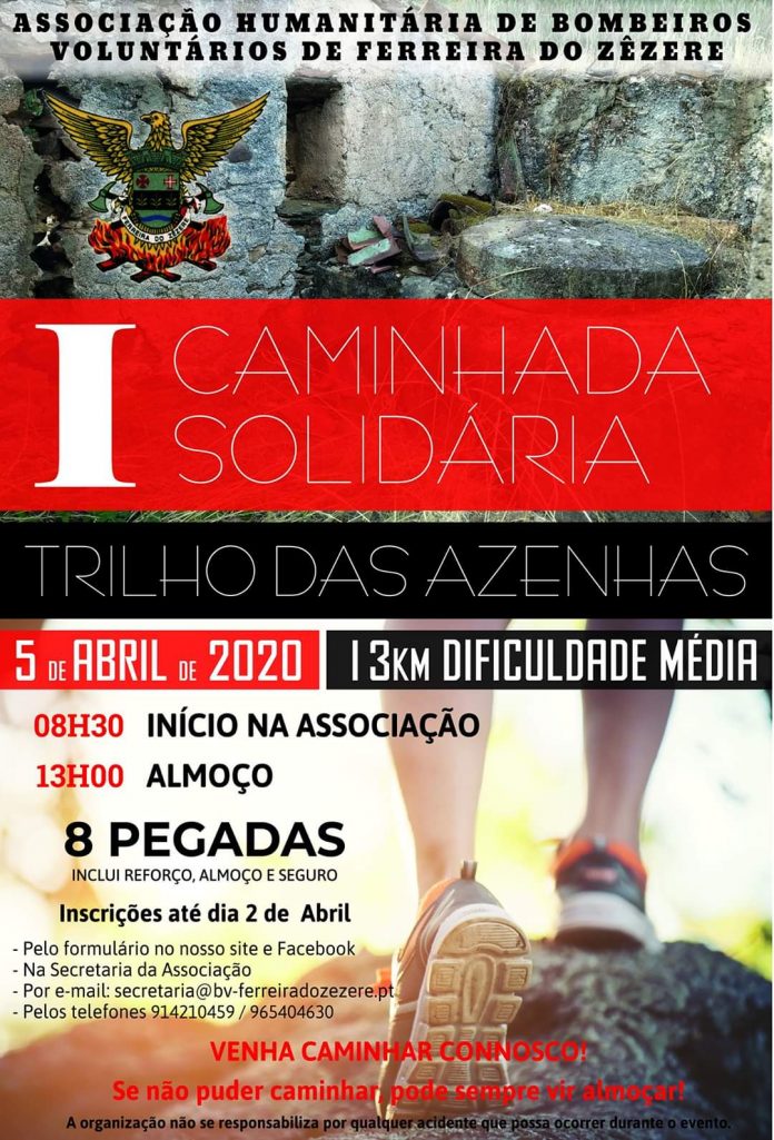 É já no dia 5 de Abril próximo que terá a I Caminhada Solidária a favor dos Bombeiros Voluntários de Ferreira do Zêzere