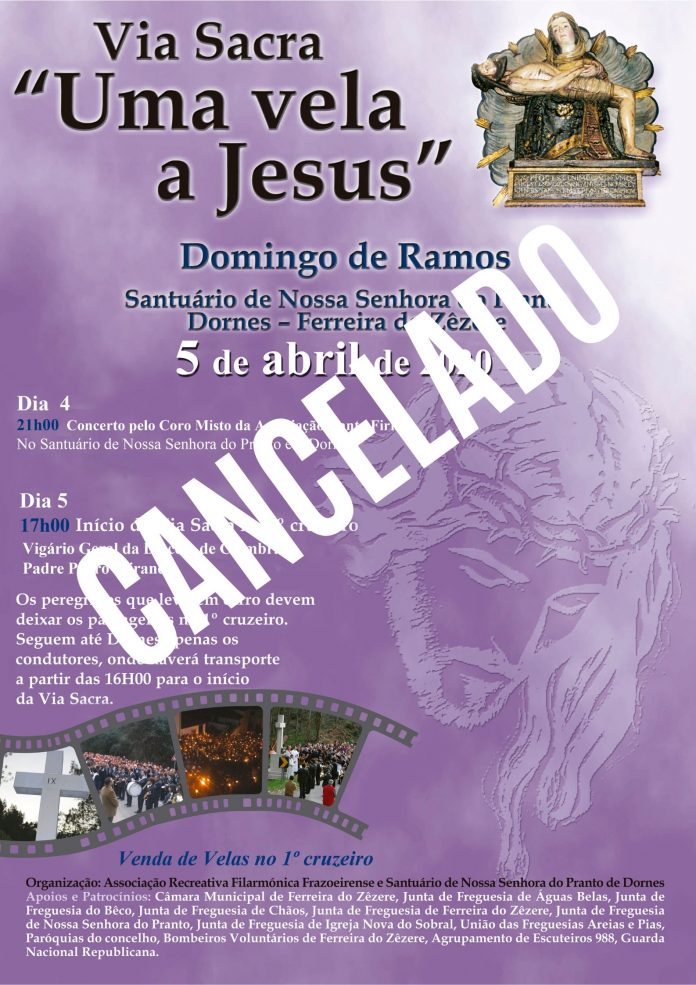 Atentos ao problema do virus Convid-19, seguindo as indicações da Conferência Episcopal Portuguesa, da Diocese de Coimbra e pela implementação do estado de emergência nacional, a Associação Recreativa Filarmónica Frazoeirense cancelou o concerto coral e a Via Sacra “Uma vela a Jesus” que se realizariam nos dias 4 e 5 de abril.