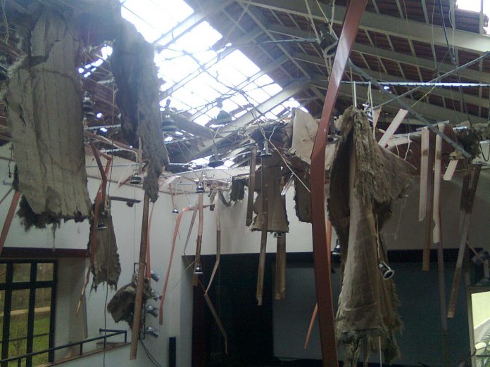 A destruição foi total à sua passagem. Pinheiros e eucaliptos completamente rasgados e retorcidos, telhados de casas particulares de edifícios públicos.
