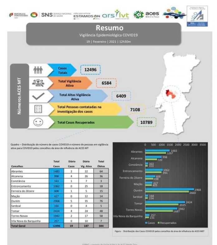 No relatório desta sexta-feira, 19 de fevereiro, da Unidade de Saúde Pública do Médio Tejo (USPMT), há registo de 1 novo caso de contaminação em Ferreira do Zêzere, estando 5 pessoas em vigilância ativa. O acumulado desde o início da pandemia é de 608 casos e 15 mortos.